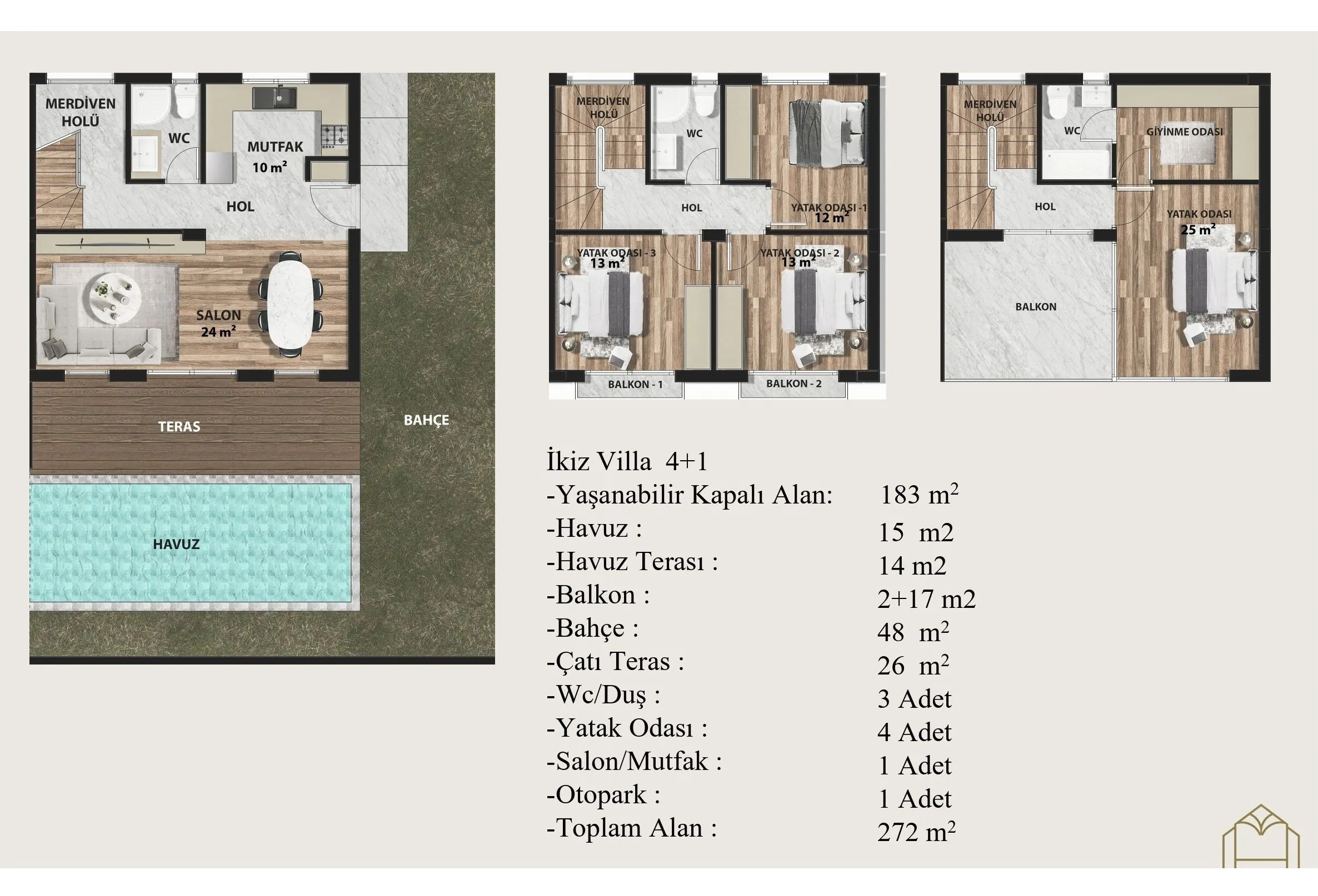 Новые виллы на двух хозяев в уютном жилом комплексе
