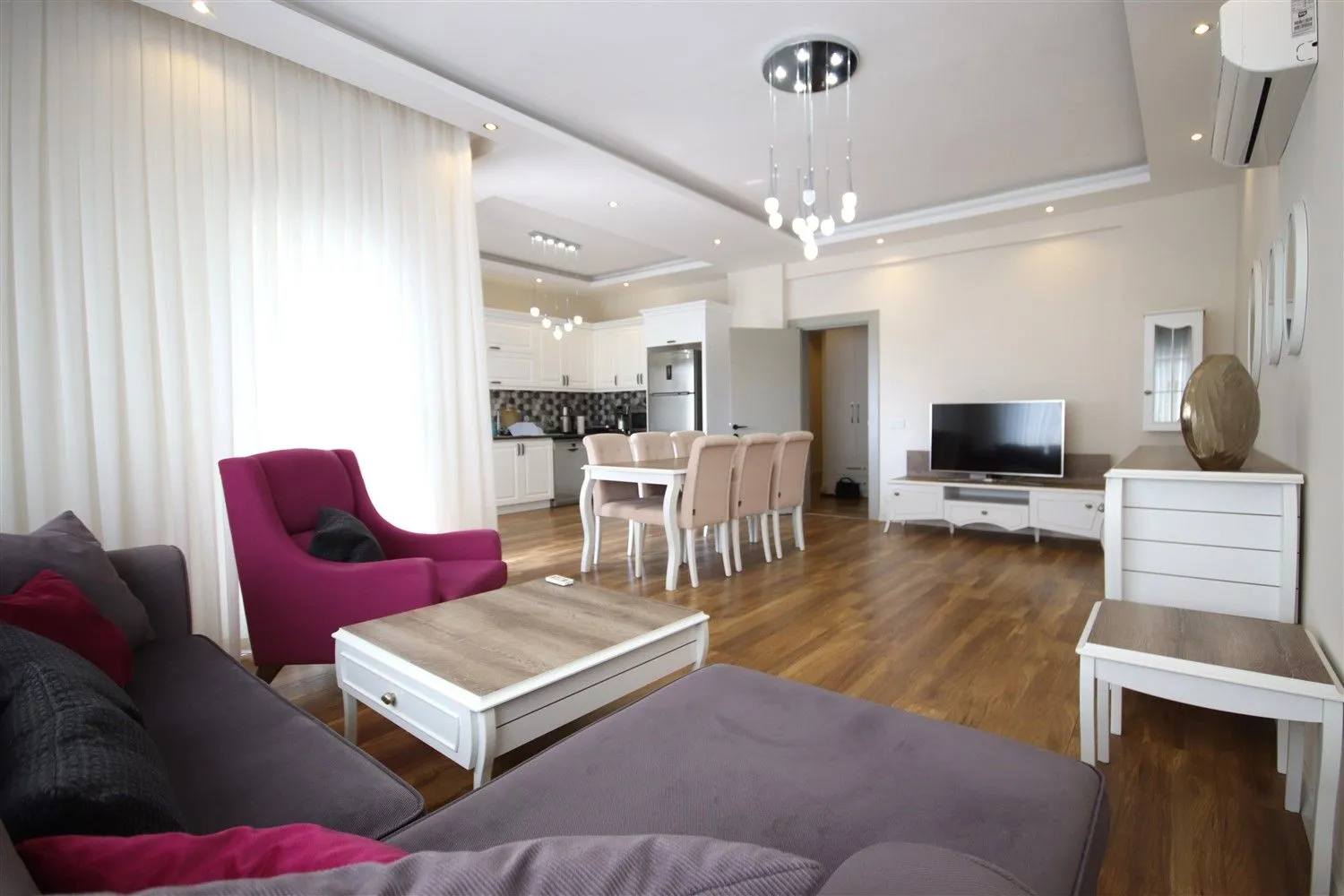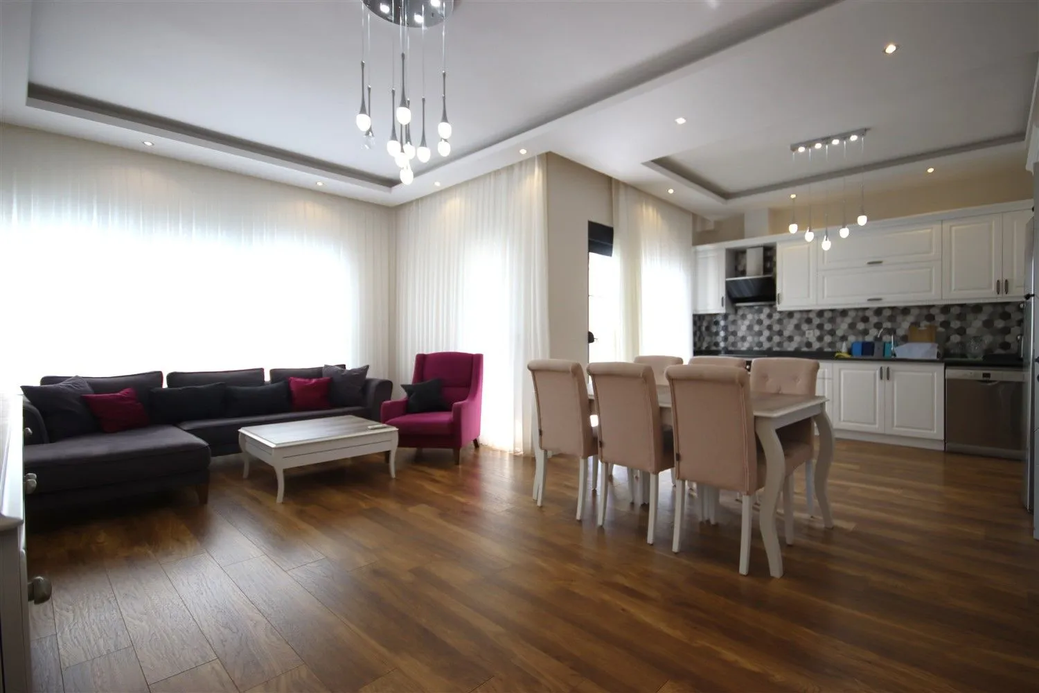Линейные апартаменты 4+1 с мебелью в районе Оба